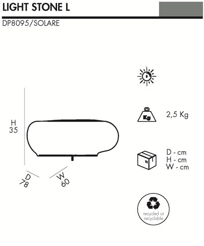 Sorgente luminosa fotovoltaica in polietilene in massa, led RGB e telecomando.