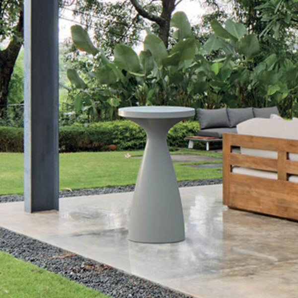 Tavolo da esterno realizzato in polietilene colorata in massa. High table outdoor made in HD mass coloured polyethylene.